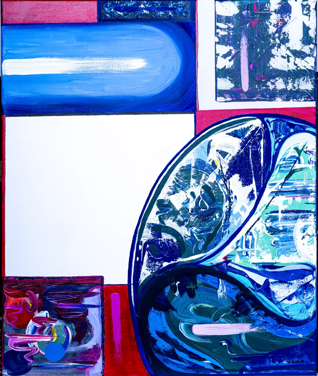"Dimensions" is a vivid and thought-provoking abstract composition that explores the interplay between structure and fluidity. Through bold geometry and rich, layered textures, the artist constructs a visual dialogue between containment and motion. Deep blues, electric teals, and intense reds dominate the canvas, creating tension and harmony across a grid-like formation. At the center-right, a sweeping, curved form in swirling blues evokes a cosmic or anatomical presence—perhaps a shell, a wave, or even a portal—inviting the viewer into deeper realms of perception. The surrounding rectangles, with varying levels of abstraction and opacity, suggest shifting layers of reality or windows into alternate states of being. Some zones are smooth and serene, others dense with gestural energy. "Dimensions" captures the complexity of inner and outer worlds, blending emotion with abstraction in a way that invites introspection. The piece stands as a testament to the infinite layers of experience and perception we navigate in our daily lives. Perfect for contemporary collectors, this piece offers both aesthetic power and contemplative depth.