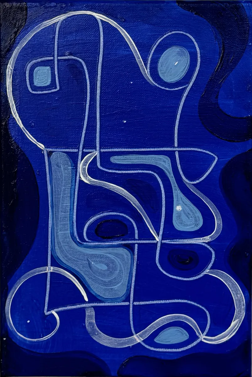 "Become" is a graceful meditation on transformation, captured through flowing forms and a restrained, luminous palette. With layered blues, gentle turquoise, and subtle hints of muted white, the painting suggests a moment in flux—a threshold between what was and what is coming into being. Soft gradients and translucent brushwork create a sense of movement without urgency, as if the image itself is slowly materializing from mist or memory. Shapes drift and dissolve into one another, inviting the viewer to witness not a finished form, but the act of becoming—quiet, continuous, and unresolved. There’s a poetic stillness at the heart of Become, evoking themes of identity, growth, and the unseen processes that shape us. It's a piece that speaks to evolution in its most intimate, internal sense—ideal for spaces that honor reflection, change, and personal depth.