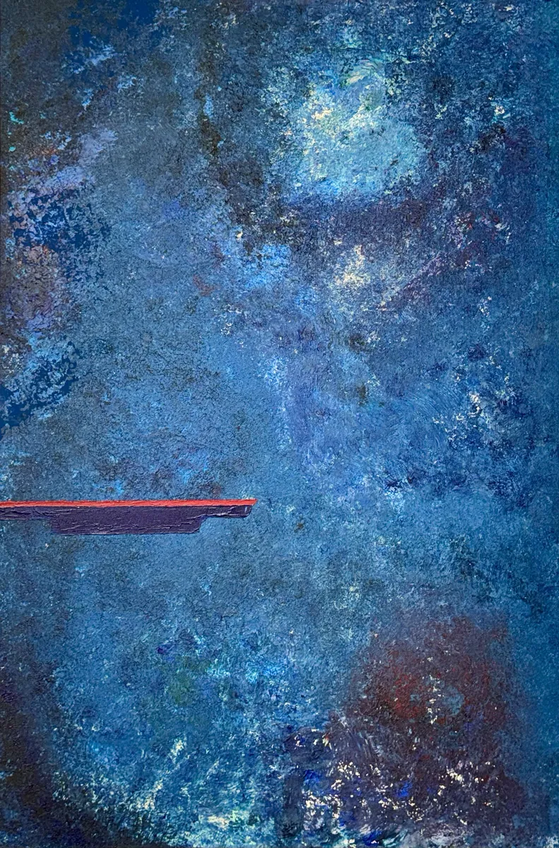 "Midnight Currents" is a mesmerizing abstract composition that channels the silent force and fluid mystery of the nocturnal sea. Swirling shades of deep indigo, sapphire, and obsidian ebb and flow across the canvas like unseen tides, layered with subtle iridescence and dynamic brushwork that give the painting both depth and motion. Hints of light—whether moonlit reflections or bioluminescent pulses—flicker throughout, creating a dialogue between darkness and emergence. The artist’s intuitive strokes evoke the sensation of drifting beneath the surface of thought, emotion, or dream. Gentle yet powerful, the piece suggests a current that moves quietly but with undeniable force. "Midnight Currents" invites viewers into an intimate, immersive encounter—a space where time slows and perception shifts. It is ideal for contemplative environments or collectors drawn to moody, meditative abstraction with a lyrical edge.