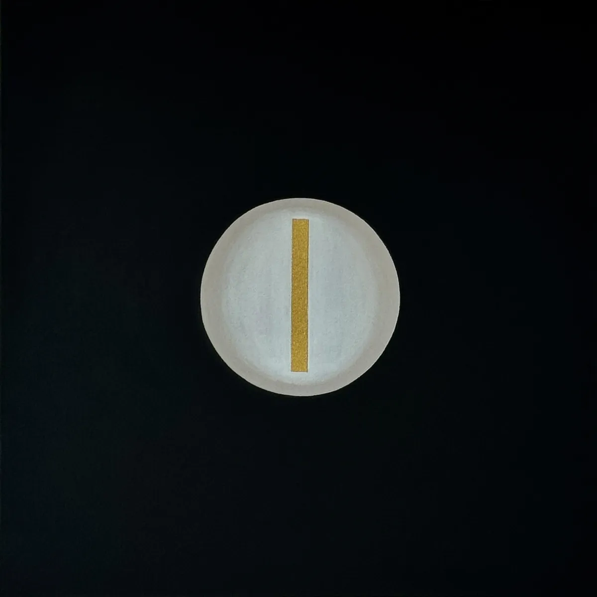 Void is a meditation on presence within absence. A vast black field dominates the canvas, embodying silence, stillness, and the infinite unknown. At its center rests a pale circular form, soft-edged yet precise, like a moon or a portal opening into another dimension. Within this circle, a single golden vertical line glows, anchoring the emptiness with a sense of clarity and direction. The simplicity of the composition heightens its impact — balancing darkness and light, emptiness and meaning. Void invites contemplation on the paradox of nothingness as a space full of potential, where even the smallest mark becomes profound.